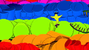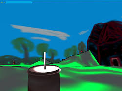 Will demonstrated the game for me. The upper third of a cardboard cup with a plastic lid and a straw sits in the foreground of the screen. A panorama of animated outdoor images scroll through the background. “I never spend more than twenty minutes creating a background. It is intentionally crude.” When a player pushes one button, the straw moves up to the front of the screen (as if in the viewer’s mouth). Push the second button and a slurping sound simulates soda being drawn through the straw. Hold that button long enough, finish the soda, and move up to the next level. That’s it.