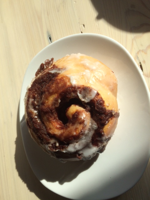 IMG_1655In the thrill of Day One I forgot two important aspects of bicycle travel: to ask my question to a stranger and to eat audacious food. I rectified both shortcomings today. First, I devoured an incredible cinnamon bun at Lil’s in Kittery, ME (Yeah – already in state number three).