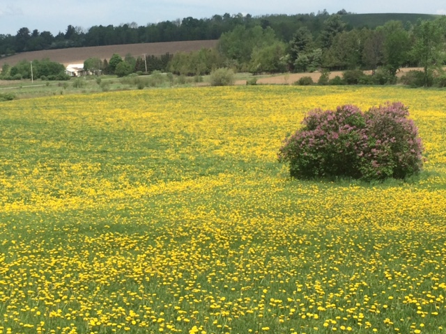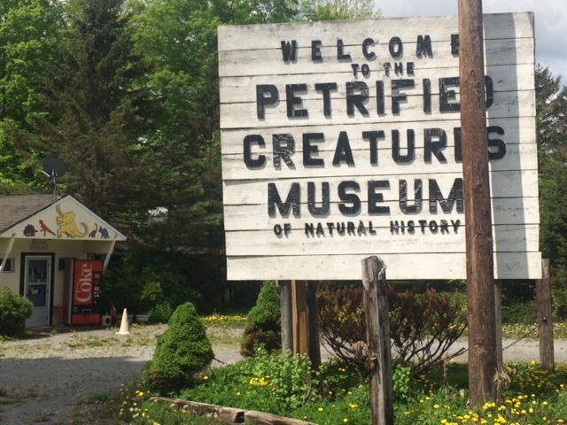 I made several trips to my hotel breakfast bar and floated out of Cobleskill on a beautiful Catskills morning. Thunderstorms were in the forecast for afternoon, but I had detailed directions and plenty of time to log the 67 miles to New Hartford. I rode through glorious farm country, past graceful churches, Mennonites in buggies, past millions of dandelions, and odd roadside attractions.