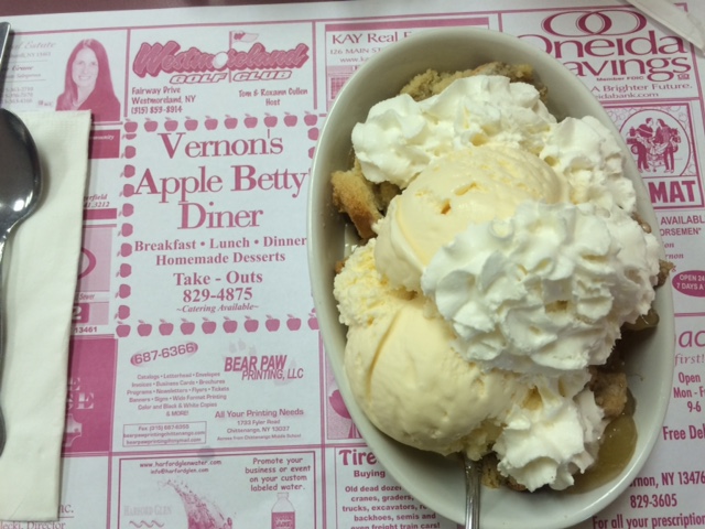 The day started muggy. I encountered a cooling light rain as I headed west. When I stopped at Apple Betty’s for lunch, the waitress told me I had just missed a huge downpour. Good thing I made a late start; also good that I ordered Apple Betty’s namesake dessert, which was terrific.