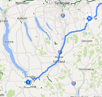 I considered biking back into Ithaca to breakfast at the 24-hour deli, but was more intrigued by moving ahead, even though the next sizable town was over twenty miles. I navigated Ithaca’s big box strip on NY 13 south, and then veered west up a major hill. Thank to the glaciers thousands of years ago, cycling in the East is very predictable: valleys run north/south, so you’ve got to climb and descend when travelling west. In this part of New York, the rise and falls are long, several miles up and then as many down into the next valley.