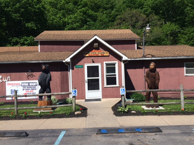 IMG_1942Today was perfect, though cold; not one cloud all day. I slipped out of my warmshowers gig right at six and clocked sixty miles by noon. My fingers were numb, but the rest of the world was heating up for Memorial Day weekend. The VFW guys at the Stebben barn were grilling racks of chicken before seven, to be tender for their noon BBQ fest. The sun hung behind the mountains until after eight. Three deer ran with me for about a mile, stopping every few moments to look back and make me feel clumsy in their grace. The sawmills were humming by nine, holiday weekend be damned. But by ten the sun was high enough to thaw my digits and folks propped themselves in front of RV’s parked along Highway 14 to watch the world pass by. The forests were dense, the rivers crystal clear, and the hunting signs ubiquitous. I wondered why the Rodman Gun Club had a wood sculpture of a Neanderthal outside their clubhouse, but decided not to inquire.