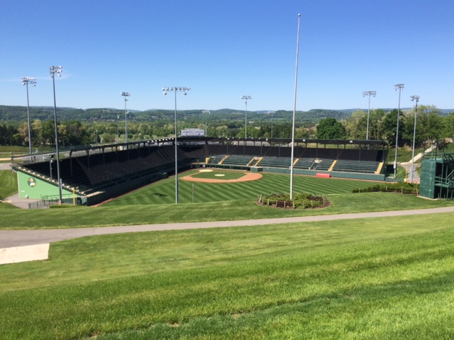 IMG_1961Given that precedent, I was compelled to roll into Williamsport without the security of reservation. I passed through downtown, crossed the Susquehanna, and climbed the hill toward the field. Little League has come far in fifty years. The City View is gone, replaced by a museum and administrative building. The main field is still there, plus a second stadium and a dormitory complex where sixteen teams from all over the globe live during the World Series. I enjoyed touring the complexIMG_1962, and discovered a vintage 50’s motel just down the road where I got the nicest room of my entire trip, with a private outdoor porch in the same orientation as the City View. The only way to channel Jack Fallon is to play fast and loose and come up with the best.