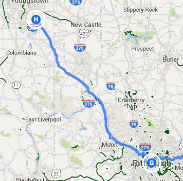 My warmshowers host, Simon, got up early, made thick oatmeal with nuts, yogurt and honey, and rode with me down the hilly streets of Pittsburgh to the Hot Metal Bridge, now a bike path across the Monongahela River. I proceeded along the Southside bicycle path with sweeping views of the early morning city to beyond the where the Allegheny and Monongahela merge to create the Ohio River. I passed back across the West Side Bridge, rode through the Manchester neighborhood, crossed back on the McKees Rock Bridge and took 51 North. Pittsburgh is all about bridges.
