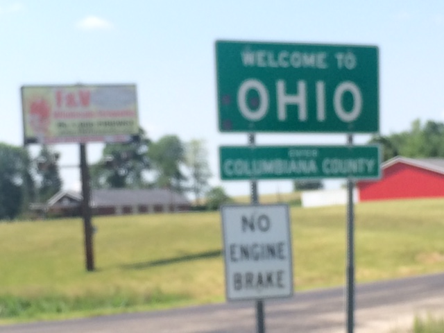 Beyond Chippewa the land started to flatten out and I knew Ohio was not far away. My directions required a turnoff just before the state line. Turns after landmarks are so much easier. I knew I missed it when I came upon Welcome to Ohio. Cyclists don’t like to turn around; guys really don’t like to turn around. Just beyond the sign was a narrow road with a sign State Line Road. I recalled my high school history of the Western Reserve and its careful survey. I decided the road probably ran north along the state line and decided to test history. The road was rocky, but never went to fully dirt. After four miles, with a quick jog at the end; I connected to the country road I had missed, which allowed me to pass another Welcome to Ohio.