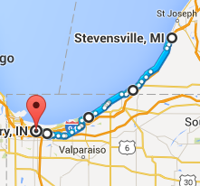 I stopped by a small crafts fair with local honey and jams. I also learned that any road called ‘Lakeshore Drive’ would veer me off the highway, wind along wooded streets and Lakefront houses, and eventually bring me back to Red Arrow. Plenty of weekend cyclists filled the shoulder. Chris caught me just north of the Indiana line. We rode together for a few miles and swapped touring stories until he grew tired of my pace and sped off.