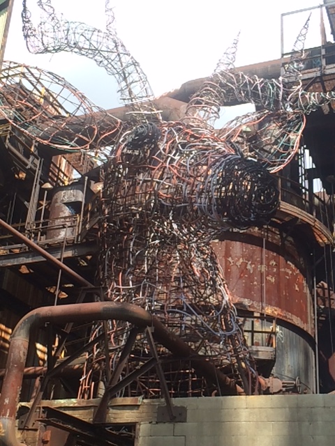 Today, the Bost Building is a museum, the Pump House a function space, and the Carrie Furnaces fragile ruins where local artists create intriguing site-specific art. Rivers of Steel is trying to stabilize the Carrie furnaces (blast furnaces all had women’s names) but not refurbish them. Corinne guided me up the narrow stairs and across the metal gangways. It’s refreshing to experience an unsanitized industrial landscape.