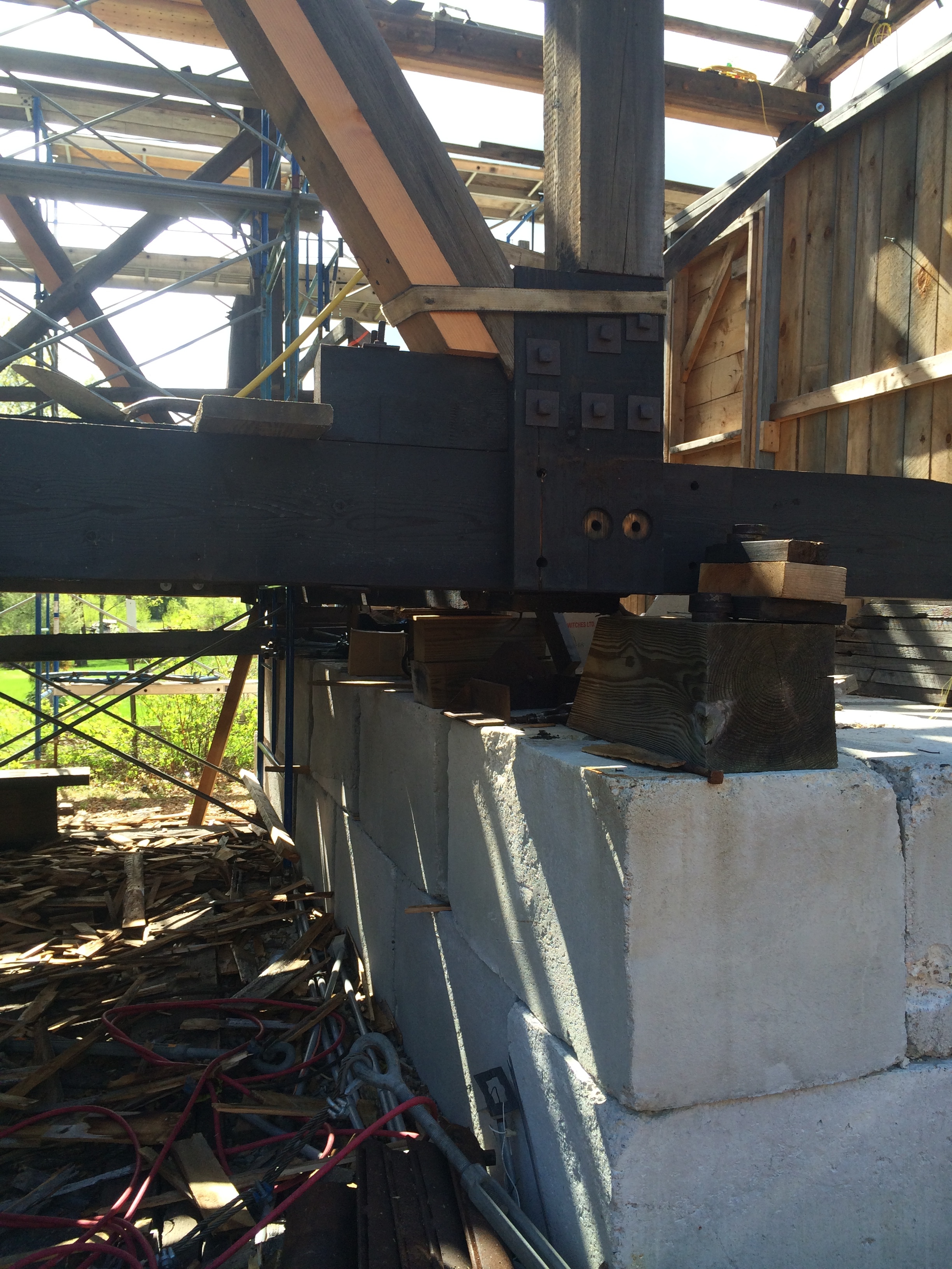 After answering the question, Garrett turned to showing me the details of covered bridge reconstruction. 3G Construction has been restoring covered bridges for three generations. We try to keep as much of the sound lumber as we can and dovetail new to it.