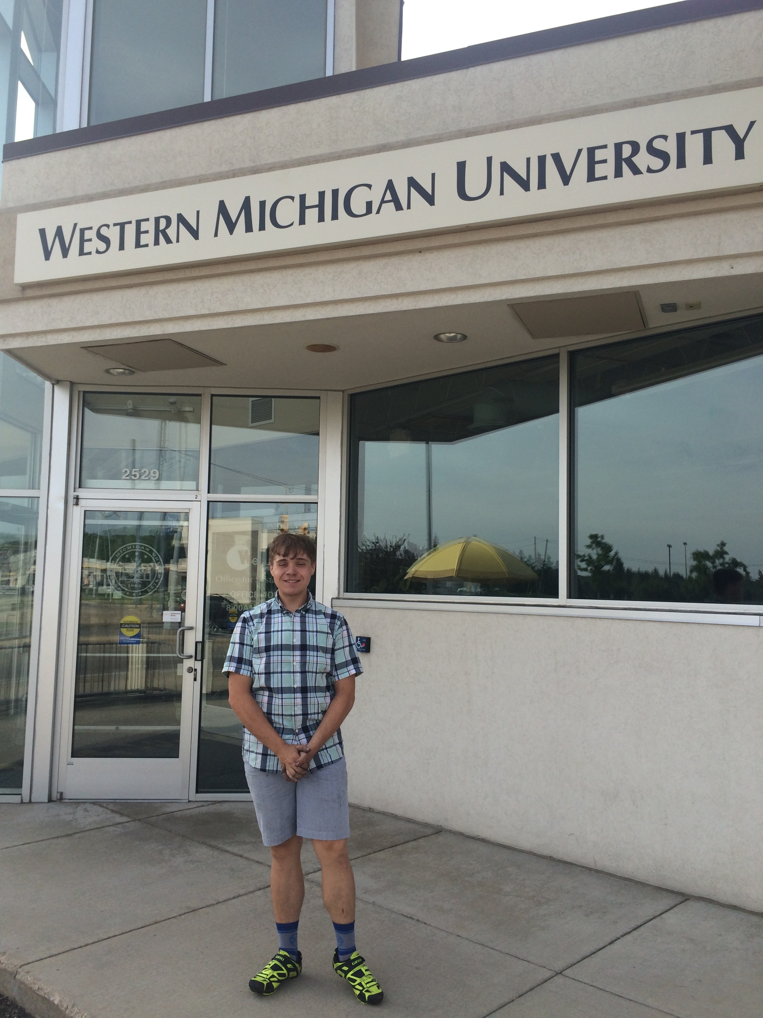 David weighed as much as 360 pounds before deciding to get his weight in line, began walking everywhere, lost 180 pounds, and discovered cycling. He cycled 6,000 miles through the U.S. and Canada in the summer of 2014. Since returning to school, David works at the WMU Center for Sustainability, volunteers for a number of green groups on campus, won an award for his leadership, and was featured in the Kalamazoo Public School newsletter as an exemplar of what the Kalamazoo Promise offers.