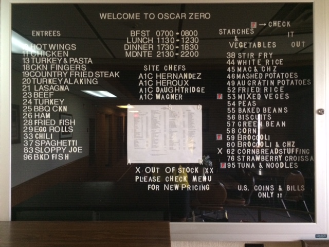 Quinn has a Masters Degree in Museum Management, yet Oscar-Zero is an odd museum. It represents an era I lived through. Nothing looks old. It’s hard to consider a Frisbee or Boggle game an artifact, or the generic blue upholstered chairs or metal bunk beds. However, the place does appear frozen in time.