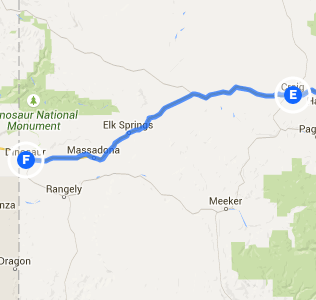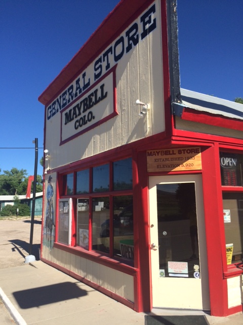 Wind notwithstanding; it was a lovely day to pedal through country whose scale dwarfs a mere bicycle. I saw my first cacti of the trip. I was pleasantly surprised to find a town not even on my Google map, Maybell, which had a general store where I got a Gatorade and ice cream sandwich. Considering how many so-called towns are little more than 300 square foot US Post Office shacks, Maybell deserves an upgrade. My other rest stops were specs of shade under cottonwood trees where US 40 dips to a stream.