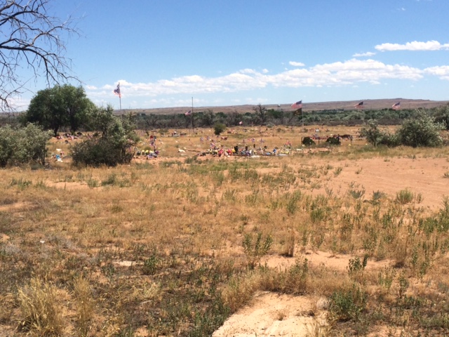The Uintah Basin is an ancient seabed, which explains both the dinosaurs and the oil. More recently it was home to the Ute Indians, whose reservation is centered at Fort Duchesne. Several tribal businesses line US 40, but what caught my eye was the Fort Duchesne Cemetery, one of the most remarkable places I’ve encountered on my trip. It’s a barren place of hard furled flags, garish plastic flowers, antler ornaments and markings of Americans who died much younger than most of us, set off the highway just enough for cars to ignore but not so far as to be serene. A woman and her daughter vacated a mini-van and placed two fresh plastic bouquets on a man’s grave. I did not ask her about tomorrow. This was the kind of place where tomorrow and today mingle in a way Native people understand and Westerners only guess about.