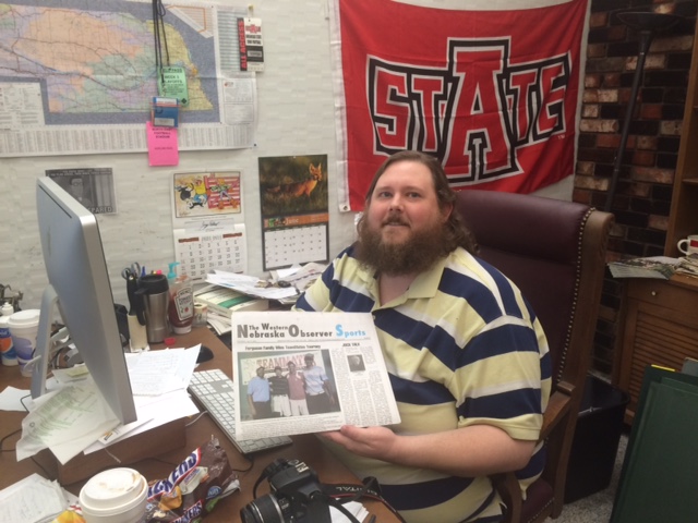 The Western Nebraska Observer began publishing in 1885; John Versey became Managing Editor last September. I was interested how small town newspapers fare in the Internet age, and was intrigued that a young man from Arkansas would move to Nebraska to take the helm of this newspaper that has four full-time employees and a part time sportswriter (who is pushing eighty and has covered local sports in this part of the panhandle for fifty years).