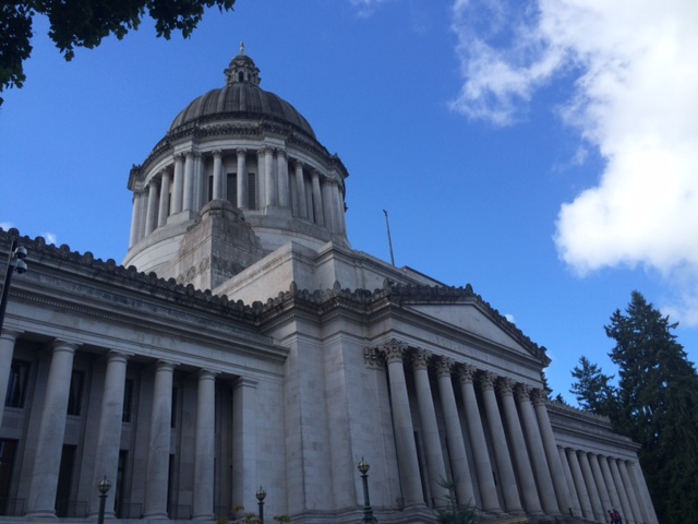 Back on the road again! I rolled out of DuPont on a beautiful morning. After a short stint on I-5, I pedaled along tree lined back roads to Olympia where I spent the morning absorbing the sites. I chatted up Zach of Zach’s Window Cleaning while I ate my grocery store breakfast and can vouch for his work. Then I visited the State Capitol. Docent Dave gives one of the best tours I’ve ever attended. He made good fun of the guy in the yellow bike shirt while knowing every detail of the carpet, furnishings, chandeliers and worldwide assortment of marble in the building. On the way out of town I discovered a salmon spawn viewing platform. The salmon will soon swim upstream, and are swarming in apparent excitement. Finally, I stopped by a fruit stand and enjoyed two huge Washington apples.