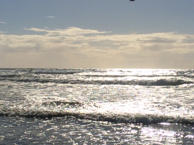 Before dinner and football I walked out to the ocean and waded in the Pacific. It was not nearly as cold as everyone says, about the same as the ocean on Cape Cod this time of year. But no one swims in it. The waves are rough, the undertow strong. Still, I enjoyed my first dip ever in another ocean.
