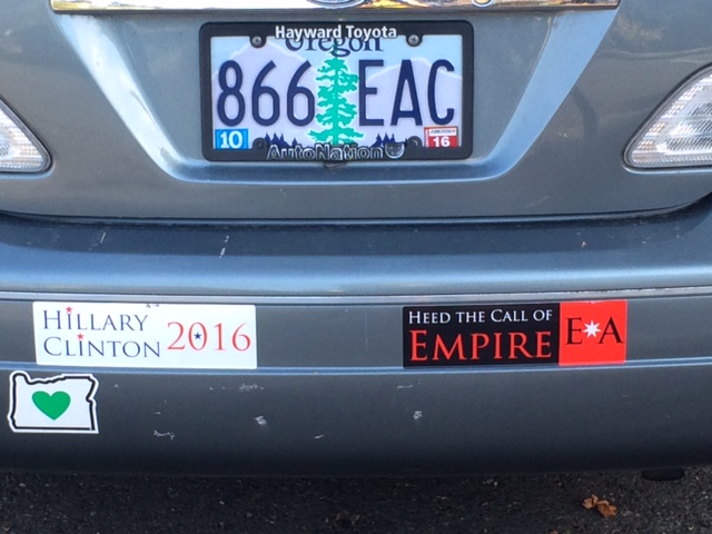 Is this the kind of bumper sticker paradox that is making Hillary loose steam?