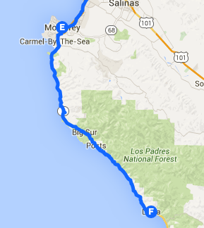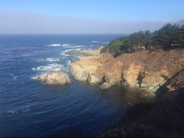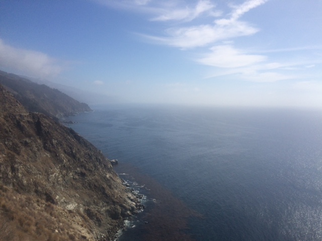 The fabled ride down California Highway One south from Carmel through Big Sur is a captivating sequence of the sea meeting the land. There are silky beaches, shallow shoals, waves crashing against granite outcroppings and water spouting up sheer cliffs. I began the day beneath a carpet of clouds, pedaled through hours of bright sun, until misty fog rolled over the hills. The sea scent was strong. The sun’s heat was dissipated by thermal drafts and crosscurrents through the canyons. Giant hawks swooped and circled, playing on the tricky breeze. The road itself is gorgeous, a sinewy ribbon that weaves up and down cliffs. Elegant bridges span deep creeks. Highway One was built during the Depression; California’s first scenic highway. It’s still the best.