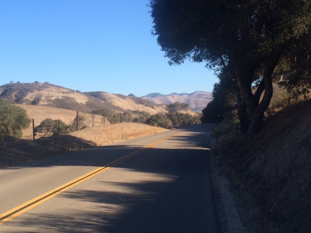 I was happy to shake the dust of Los Olivos from my feet, even if it meant cycling through the hottest part of a very hot, cloudless day. The grass along the road is beyond brown. It’s translucent stubble waiting to spark.