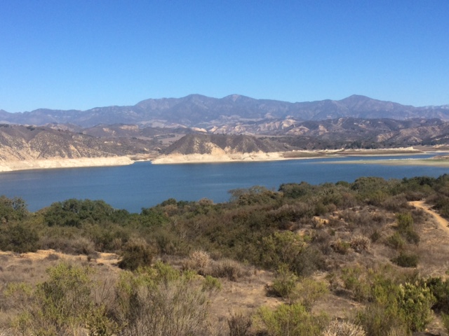 There’s a pittance of water in Lake Cachuma. The surface of the reservoir is well below the lowest discharge gate. A big green hose siphons water through the dam, an inelegant solution to a problem the dam designers never considered.