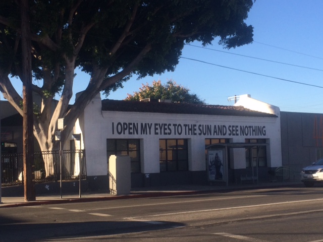 It took awhile to get out of there. (The Getty shuttle system is a mess. Why don’t they put in a sidewalk and let people who walk, ride bike sand come by bus walk the sort distance up the hill? LA car snobbery at its peak.) I had a 3 p.m. interview on Wilshire, so couldn’t loiter on the beach. The ride back into town was worth it because Lisa Arungua of the LA Public Health Department was one of the most interesting people I’ve talked with to date. We could have talked for hours, but I had to bow out at 5 p.m. because I needed to get to Culver City before dark. As serendipity would have it, I passed one of Lisa’s public service billboards on my way.