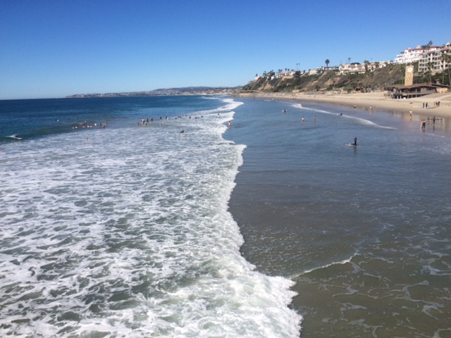 Summertime! The sky was clear, the breeze was light, the surf was up, and everyone was out on a sunny Southern California afternoon. I rode from Mission Viejo to San Juan Capistrano, which has one of the most extensive Missions I’ve seen. The rest of the ride was well marked bike path along the coast through San Clemente, Camp Pendleton Marine Base, Oceanside, and Carlsbad. Aside from teh sun setting before 5 p.m. for the first time, it could have been a July day.