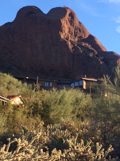 Afterward, I took off to explore Arizona’s tony neighborhoods and was not disappointed. San Francisco, New York, LA, even Seattle may have higher real estate prices, but they can’t match the pizzazz that Scottsdale’s and Pleasant Valley’s immense lots and sprawling homes deliver. True, some houses are ill proportioned; you can’t make a successful 10,000 square foot statement by just pumping up a 2,000 square model and adding a string of garages. But many of the residences are architecturally striking; with corrugated metal, weathered steel and crisp stucco that fits the desert well. Although the scale of these low-lying mansions is conspicuous beyond reason, I appreciate that most people in Phoenix don’t succumb to the California penchant to grow lawns where they don’t belong. The gravel, sand, and native plant landscaping is terrific.