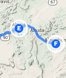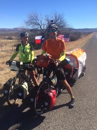 I started at Sul Ross State University in Alpine, where I had a conversation with Andy Cloud about the archeological work of the Center for Big Bend Studies. By the time I rolled downhill from campus the day was already warm, almost summery. Ten miles out I met Georgia, Mark, their two dogs and over 200 pounds of gear, including a dog trailer, on a 10,000-mile trip with a route as circuitous as mine.