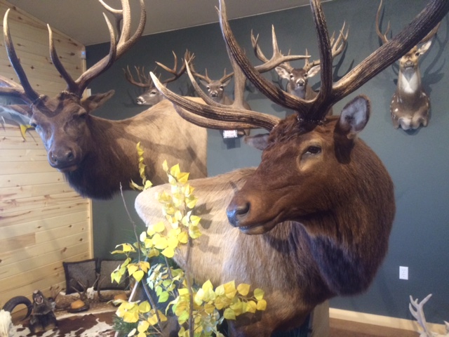 I rode by several taxidermy signs. When I passed a large shed with an open garage door displaying a giant elk, I decided to investigate. Joe Schneider of Realistic Taxidermy and his assistant Amanda explained the taxidermy process while they toured me through their showroom and workshop. The extent of hunting in this region and the range of animals that hunters want to display surprised me.