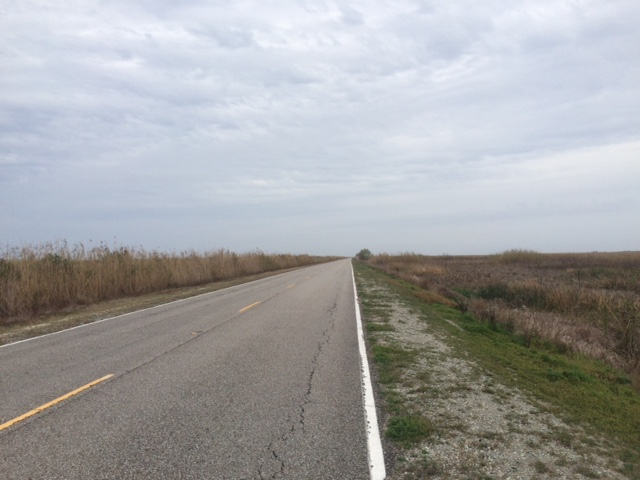 As I approached the eastern edge of Cameron Parish all signs of civilization disappeared except the blacktop: no houses, no driveways, no electric wires. For more than five miles into Vermillion Parish the road was man’s sole intervention. Then, slowly, bits of human evidence reappeared until I came to the linear village of Pecan Island and found my warmshowers host for the night.