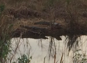 Like so many things, once you know what you’re looking for, things are easy to see. Over the next five miles I spotted fifteen alligators, most on the far shore of the ponds that line the south side of the highway, many in pairs, some over six feet long.