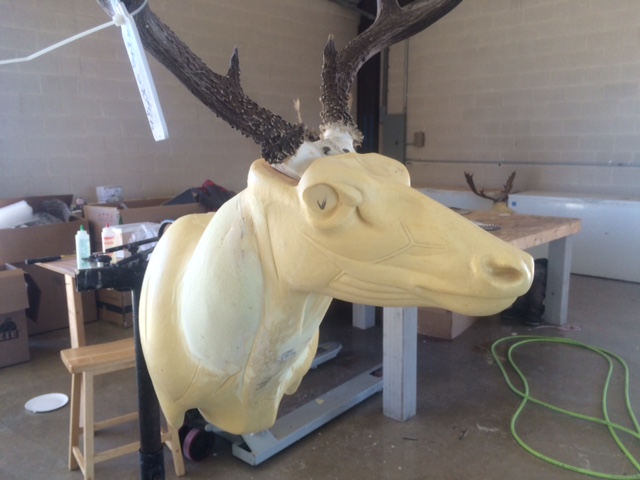 They select a prefabricated foam manikin that close matches the deer’s measurements. They elongate / shorten / adjust it to match their original measurements. No two deer are alike, though they all have the same color eyes. Glass eyes vary only in size. Once the hide has turned to leather, they mount the antlers and stretch the hide onto the form, a process that resembles shrink-wrapping.