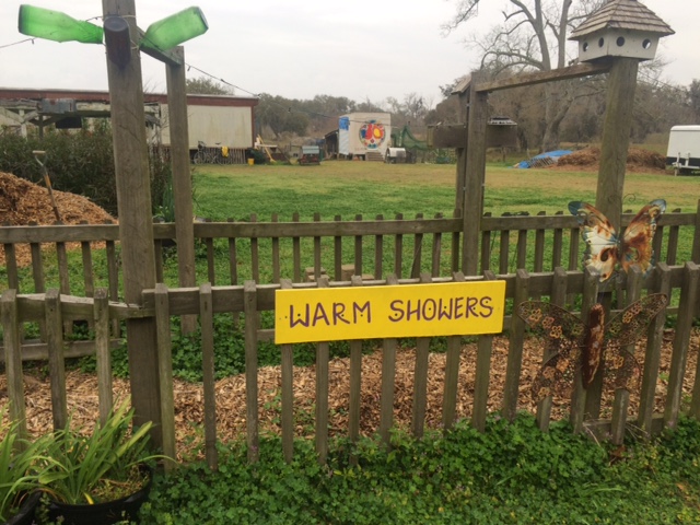 IMG_6219Juanita greets you by clasping both hands. She looks into your eyes and says, “Welcome to my home. Be at home here. Stay as long as you like.” She directed me to put my bike in the shed and introduced a few dogs. Inside, she stuck a cold beer in my hand and outlined house rules. “I prepare the first meal, after that, graze on your own. There’s plenty of food. Don’t leave one spoonful in a container, finish it up and add it to the shopping list here on the refrigerator.” She showed me my futon, the bathroom, the Louisiana map on the kitchen wall, and the atlas for route planning. “I love maps. Can’t stand fiddling with them on the Internet. Give me latitude lines.”
