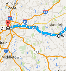 The only thing better than a solid breakfast – is two solid breakfasts. My vegan host Tony made me an awesome smoothie with so many ingredients I can’t begin to recall: thick and creamy and just a tad chocolaty. Then I pushed myself over one hill to enjoy another breakfast with an immigrant mom and her daughter at the Thread City Diner in Willimantic, which makes the largest and tastiest pancakes anywhere.