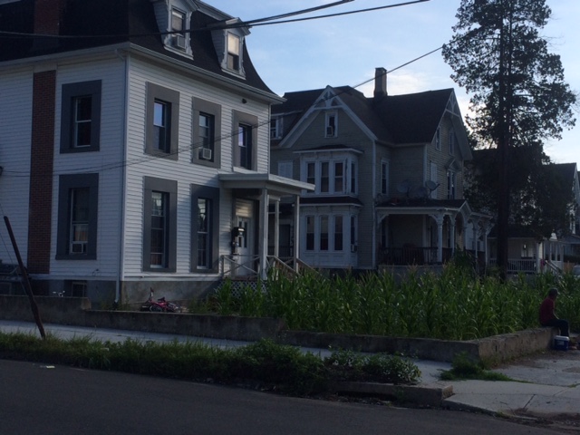 Connecticut is a state of beautiful, hilly terrain, lavish suburbs, and poor cities. ‘Home rule’ is big in this corner of New England; it shows through giant contrasts from place to place. I managed to get turned around in Danbury today (I seem to tack on five miles of misdirection every day) but rather enjoyed the inner core of this city rich in Brazilian immigrants. Fortunately, Danbury is not nearly so desolate as other Connecticut cities. Entrepreneurism triumphs, as in this house with a front yard cornfield.