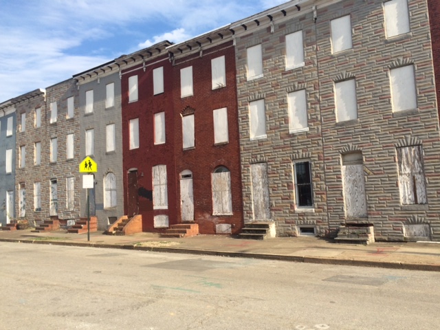 The remaining thirty miles into Baltimore were uneventful but traffic-filled. I entered into the Northeast quadrant, a historically poor area. I passed blocks of Baltimore-style row houses. I went by Greenmount Cemetery, which sits high above the city with the skyline beyond. By the time I got closer in, the row houses were tight to the street, not a bit of shade or green on a hot afternoon to help the folks on their stoops get cool. Several blocks were boarded up completely.