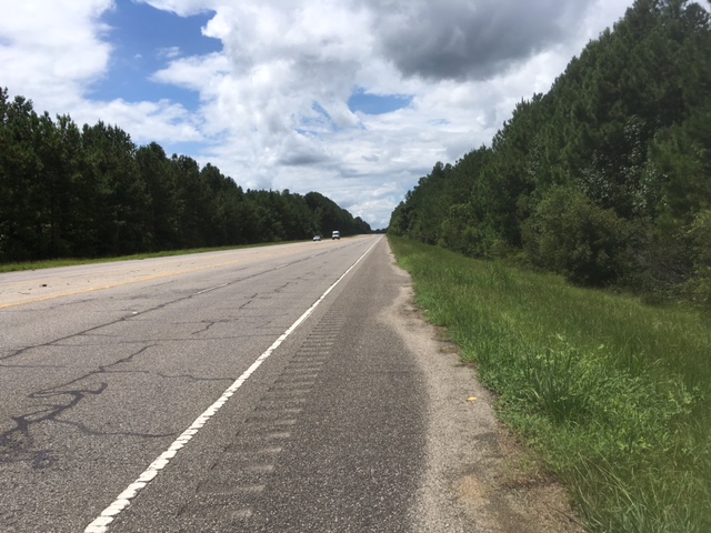 IMG_6600It was impossible to get turned around today – US 52 South for 75 miles, bear right on Alt US 17. I was looking forward to riding through the Francis Marion National Forest, but the tall trees and shady road I imagined was a far cry from the wide highway and mowed shoulders that kept me in full sunshine all day.