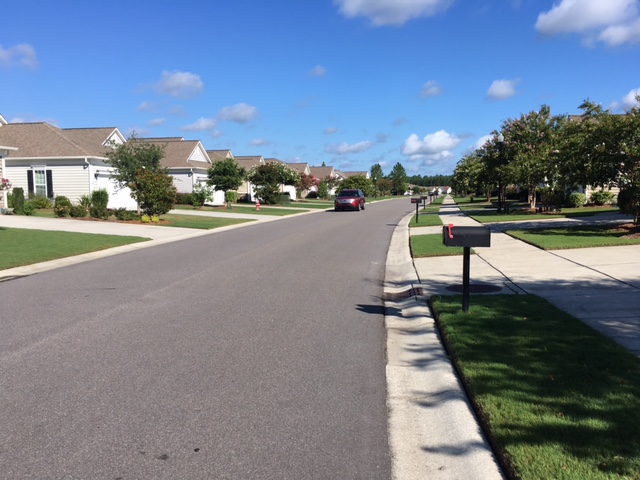 Del Webb Charleston has a community center and swimming pool, organized parties and tennis courts, but no golf courses. Instead it features lagoons – fourteen of them – created by bulldozers shaping the swamp into buildable lots. The focus of development is densely packed individual homes. Garages dominate front yards. My hosts live in a 3-bedroom 2400 square foot house that is as unrelated to its Sun City predecessor as a McMansion is to Levittown.