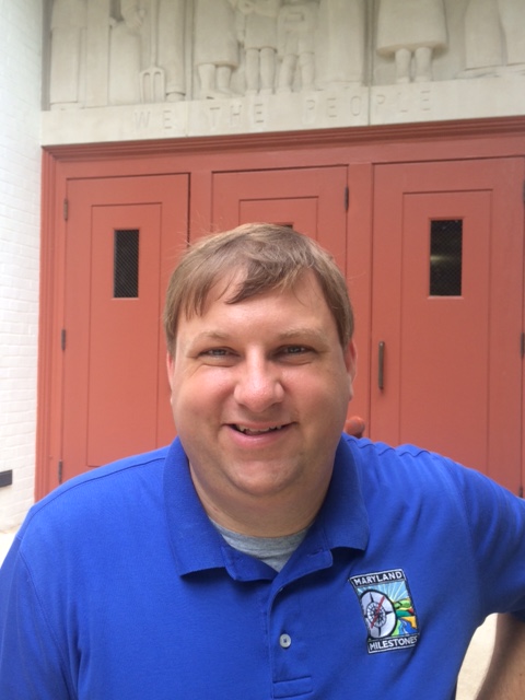 Aaron Marcavitch and I met at the Greenbelt Community Center, a deco-style 1930’s building that used to be the town’s elementary school. When the school became antiquated the town purchased it and runs a gamut of activities – from circus camp to artist studios, to a museum display, to senior meals – out of central edifice of this planned town.