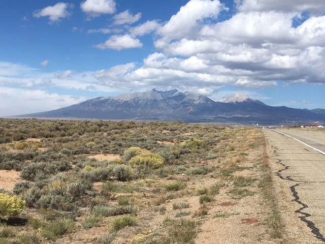 San Luis is directly south of Fort Garland, so my headwind turned into a crosswind; a different kind of challenge. Luckily, I enjoyed a big shoulder and little traffic, but riding was still difficult. I stopped every few miles to steady my nerves and absorb the amazing views.
