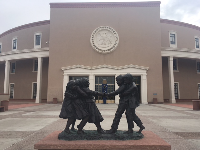 After ten I explored the streets of this charming capital city of high altitude style and colorful art. The colors were particularly welcome on this grey, featureless day. The State Capitol is among the most bizarre in our nation. Not only no dome, not even a flag. The frontcourt features a sculpture of three girls and two boys at tug-of-war; very odd for a guy accustomed to New England’s obligatory Revolutionary War hero on a horse.