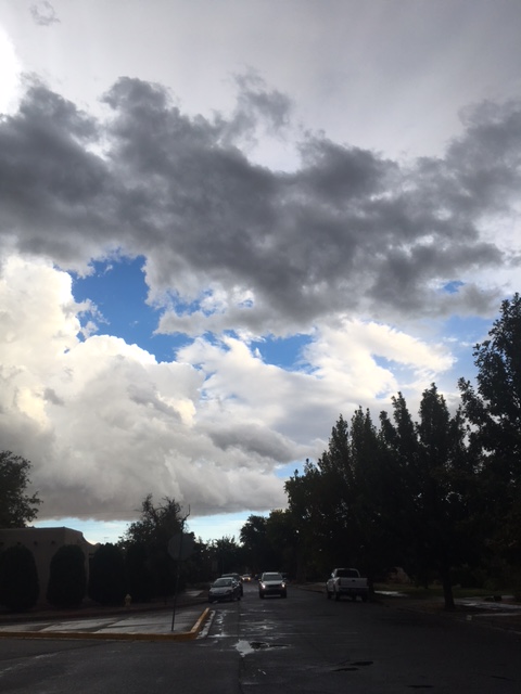 My tires stayed gripped to the earth, but my attention all day was in the clouds. From first light through midday to evening storms, the New Mexico sky was amazing today.