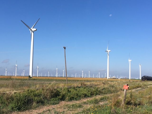 Flying with the wind! I pedaled through the largest wind turbine farm of my trip today, hundreds of turbines north of Roscoe spread out for more than ten miles. While they generated energy, I made time. A mid-morning wind shift that gave me a tail boost all day; I arrived in Abilene by 2:30 p.m.