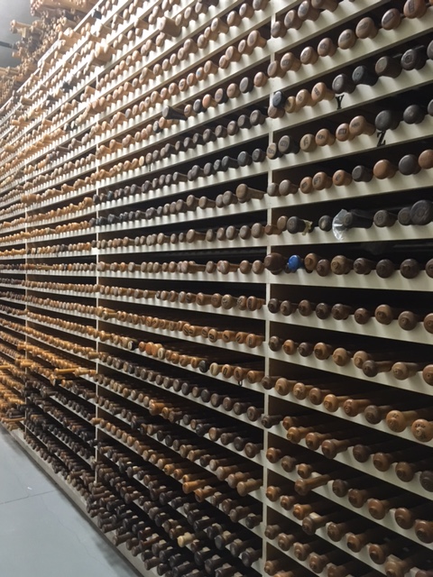 Tony took me inside the Bat Vault, where they preserve more than 3,000 custom designs created over one hundred years: the bats of all the greats in the game. “Wow!” I exclaimed the moment I entered. Tony smiled, “everyone says that.” Each unique design is categorized by the player’s last initial and a chronological number. Tony took down R43, a bat created for Babe Ruth. Several players have multiple bat designs to their credit. They change bats throughout their career or use different bats for different game conditions. Tony showed me Ted Williams’ hand drawing of the exact dimensions he required on his bats. So much of our culture is crammed into this narrow space.