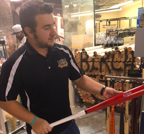 Louisville Slugger Factory, 2016: Tony Sciotti toured me through the place that bat was made. Tony played baseball in high school in Rochester, NY and in college. After he interned at Louisville Slugger in 2013, he stayed on. “It’s a way to keep myself in the game.”