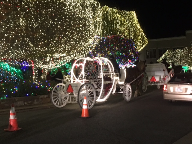 Hayden toured me through this nifty college town and took me to fountain that espouses peace in over 100 languages. We landed a streetside table at Tiny Tim’s Pizza for in-house brews, a tasty pizza, and a primo panorama of the holiday lights on Fayetteville’s square. Sorry Bentonville, Fayetteville’s lights are way snazzier.