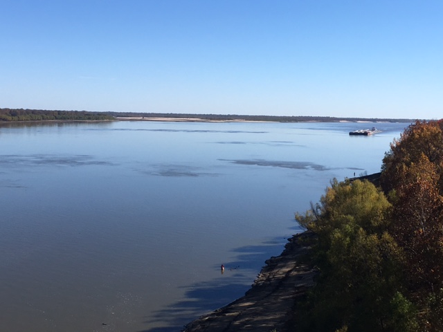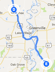 Up and over the mighty Mississippi to the state that bears its name. Some very tough riding along Highway 454: no shoulder, ruble strip, heavy traffic, unhappy drivers. At MS 1 south I took a break to eat and untangle my nerves. Then I enjoyed forty miles of smooth sailing past water glistening in the bayous, plowed rows of black earth, crop dusting planes, and a tireless dog who ran alongside me for two miles.
