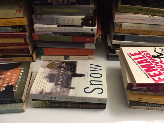 Karen Bone’s living room has two bookcases, well stocked. On one side of the sofa is a pile of books, actually three piles, maybe twenty in all. On the other side is another, equally impressive pile. “One stack is what I’m reading, the other stack is what I will tackle next.”